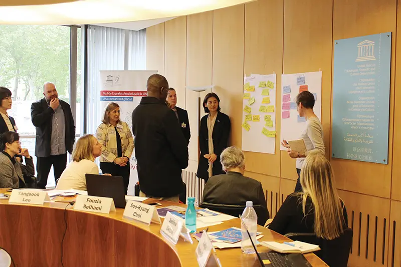 지난 4월 24일과 25일, 벨기에, 핀란드, 케냐, 잠비아, 한국, 멕시코, 아르헨티나, 필리핀 등 8개국 ASPnet 국가조정관 및 교사연수 담당자, 아랍지역을 대표하는 유네스코 RCQE(Royal Centre of Quality Education) 담당관, 유네스코 아시아태평양 국제이해교육원(APCEIU) 전문가와 유네스코본부 ASPnet 담당국장 및 직원 등 17명이 파리 유네스코 본부에 모였다. 유네스코학교의 프레임워크 내에서 세계시민교육 프로그램을 육성하기 위한 교사 지원 방법에 대해 논의하고, 2020년 1월에 유네스코 주최로 개최될 유네스코학교 교사양성기관 국제회의의 목적과 형식에 대한 브레인스토밍을 갖기 위해서였다.