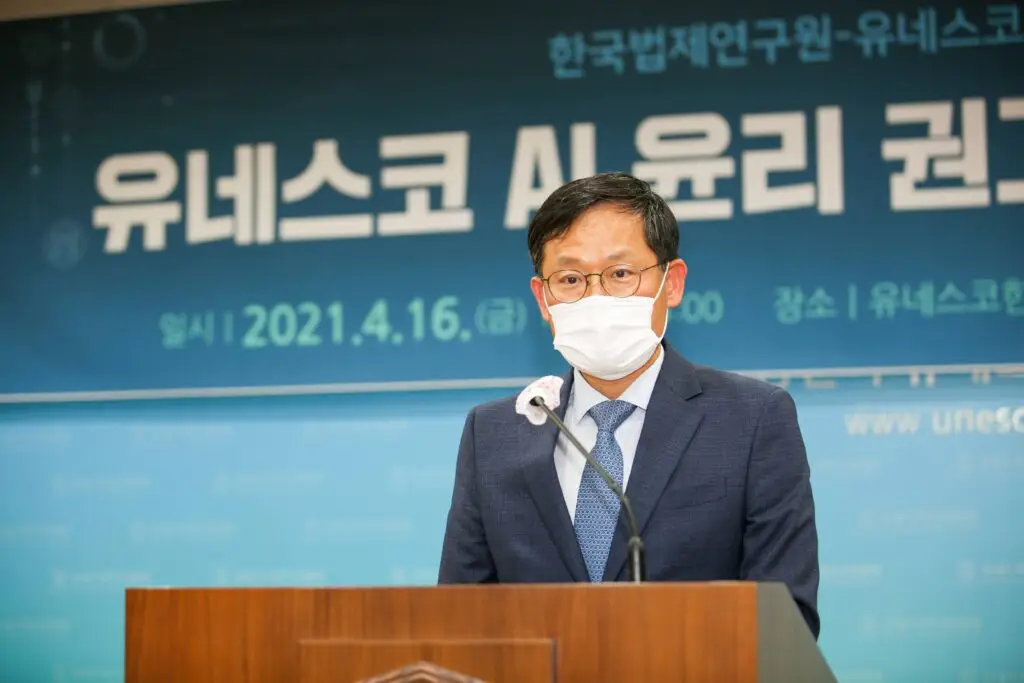 협약식에 앞서 오전 10시에는 양 기관이 공동으로 ‘유네스코 AI 윤리 권고 현황 및 법적 과제’를 주제로 포럼을 개최하였습니다. 이번 행사는 유네스코 AI 윤리 현황과 주요 법적 쟁점에 대해 논의하고 관련 법제 변화를 전망하기 위해 마련되었습니다.
