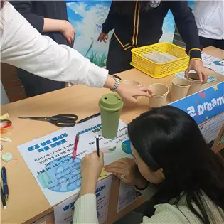 | 활동내용 | 1. 활동 구상 동기 : 전북외고 유네스코 동아리 유스 내 토의를 통하여 최근 환경오염이 심해지며 발생한 지구온난화로 인해 전 세계에 많은 자연재해들이 발생하고 있다는 것을 인지하게 되었다. 환경오염으로 인해 지구온난화와 이상기후 현상이 극심해지며 전 세계 곳곳에 일어나는 자연 재해가 지구촌 모두에게 피해를 주고 있다는 사실을 바탕으로, 전 세계 사람들과 지역사회가 재난에 대한 노출을 줄이고 자연재해 예방의 중요성 인식을 높이기 위해 지정된 세계 자연재해 감소의 날을 보다 더 많은 학생들에게 알리고, 학생들이 주체적으로 환경보호 활동에 참여해 볼 수 있는 기회를 제공하고자 동아리 유스 주최 하에 해당 캠페인을 구상하고 진행하게 되었다. 2. 활동 진행 과정 : 매점이나 카페에서 구입한 플라스틱병과 빨대로 음료를 마시는 경우가 많은 본교 학생들의 특성을 고려하여, 스테인리스 빨대, 청소 솔, 친환경 생분해 케이스로 구성된 빨대 세트를 제작한 뒤 이를 복숭아 아이스티와 함께 전북외고 재학생 및 교직원 대상으로 판매하여 기부금을 모았다. 개인 텀블러를 지참했을 시 할인된 가격으로 판매하여 학생들의 텀블러 사용을 활성화하였다. 또한 빨대를 구매한 학생들이 환경오염 및 지구온난화 문제에 대해 경각심을 느끼고 환경을 보호하는 방법에 대해 생각해볼 수 있도록 환경 보호 메시지 작성 부스를 동시에 운영하여 프랑스어, 스페인어, 중국어, 일본어, 독일어, 영어로 캠페인에 참여한 학생들이 직접 작성한 환경보호 메시지를 수거하였다. 3. 후속 활동 내용 : 더 많은 학생들에게 환경오염으로 인한 자연재해의 심각성을 알리고자 스페인, 프랑스, 중국 등 세계에서 일어나는 자연재해 현황을 담은 카드뉴스와 스테인리스 빨대 사용을 통한 환경보호 효과를 알리는 카드뉴스를 제작하고 동아리 유네스코 인스타그램에 게시하였다. 또한, 동아리 유스 내에서 환경을 지켜야 내일을 꿈꿀 수 있다는 의미를 담은 슬로건 “Green today, Dream tomorrow”를 정하여 유네스코 드림 희망나눔가게의 활동 의미를 확장하였다. |