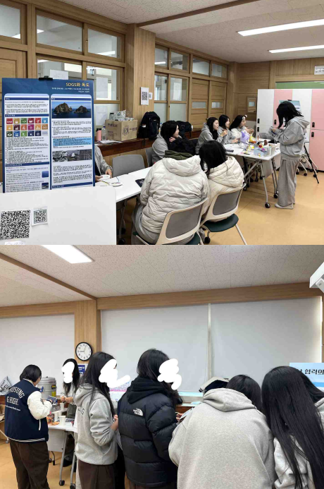 | 활동 내용 | 글로벌 브릿지(유네스코) 동아리에서 SDGS 캠페인과 관련된 부스를 운영하였습니다. 먼저, 독도 부스에서는 SDGS 16번 평화, 정의, 포용과 17번 지구촌 협력 강화를 바탕으로 ‘독도 무비 데이’를 진행하여 독도를 알리는 영상을 직접 제작해 상영했습니다. 영상학과에 관심 있는 학생이 편집을 했고, 사학과를 희망하는 학생이 관련 자료를 찾아보았습니다. 더불어 SDGS를 상징하는 색으로 팔찌 만들기 활동을 함께 진행하여, 학생들이 팔찌를 만들며 지속가능발전목표의 의미를 자연스럽게 떠올릴 수 있도록 부스를 진행하였습니다. 건강 부스에서는 보건계열 진로를 희망하는 학생들이 모여 SDGS 3번 건강하고 행복한 삶 관련하여 스트레스와 공기와의 관련성을 주제로 스칸디아모스와 편백나무를 활용한 만들기 체험을 진행했습니다. 사전에 미리 학생들을 대상으로 스트레스 요인 등에 대한 설문조사를 실시했고, 설문조사 값을 토대로 체험 활동을 통해 심신 안정에 도움이 될 수 있도록 구성했습니다. 교육 부스에서는 SDGS 4번 모두를 위한 양질의 교육을 바탕으로 ‘드림드림 희망나눔가게’를 운영하며 바자회를 통해 모은 수익금을 기부 취지에 맞게 사용했습니다. 공정무역 카페 부스에서는 SDGS 12번 지속가능한 생산과 소비와 13번 기후변화와 대응을 바탕으로 통합사회와 세계지리에서 학습한 플랜테이션 농업과 과거 노예무역 사례 등을 바탕으로 공정무역의 의미를 알렸습니다. 또한 텀블러를 지참한 학생에게는 음료를 무료로 제공하고, 종이컵을 사용할 경우 300원을 모금했으며, 사용된 종이컵은 생분해성 제품을 활용했습니다. |