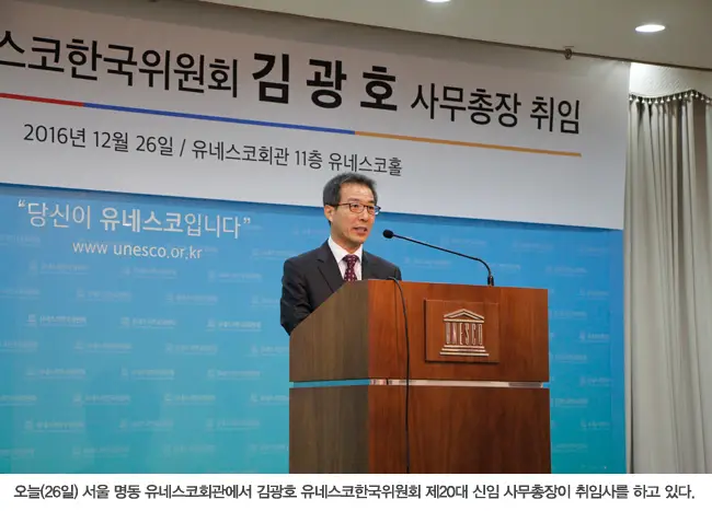제20대 유네스코한국위원회 신임 사무총장에 김광호 전 국립국제교육원 원장이 취임했다. 김 신임 사무총장은 이날 이준식 유네스코한국위원회 위원장(교육부 장관)으로부터 임명장을 받은 후, 서울 명동 유네스코회관에서 취임식을 갖고 4년 임기를 시작했다.
