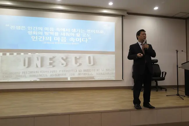 지난 6월 10일, 부산 용인고등학교(교장 민명진)가 작년에 이어 올해에도 지구촌 교육 지원을 위한 후원금 300만원을 유네스코한국위원회에 전달했다. 부산용인고는 유네스코학교 중 하나로 지난 2000년 이후 매년 ‘용인삼색 후원활동’을 꾸준히 전개하며 지역 사회 봉사활동과 모금을 통한 나눔을 전교생이 함께 실천해오고 있다. 이날 감사의 뜻을 전하기 위해 부산을 찾은 민동석 유네스코한국위원회 사무총장은 2학년 전교생에게 ‘세계를 향한 꿈과 비전’이라는 주제로 강연을 하기도 했다.