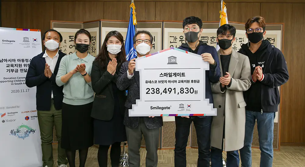 (재)스마일게이트 희망스튜디오(이사장 권혁빈, 이하 희망스튜디오)가 유네스코한국위원회(사무총장 김광호)에 유네스코 브릿지 아시아 교육지원 후원금 2억 4,000여 만 원을 기부했다.