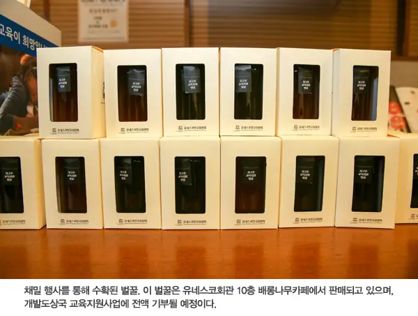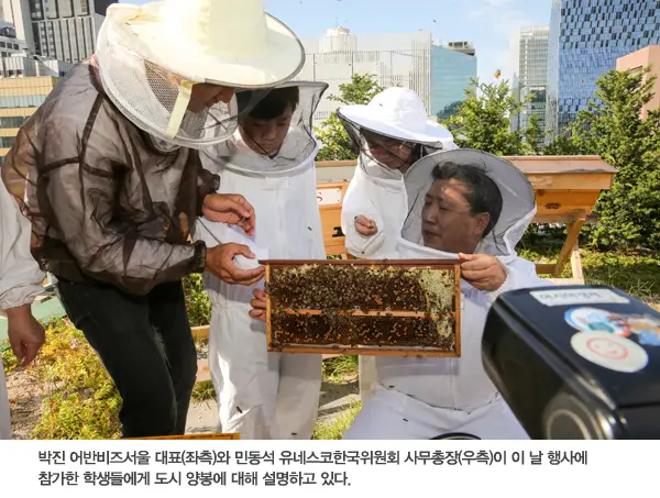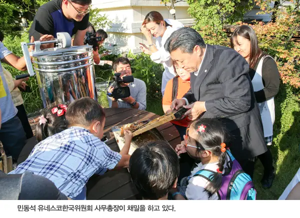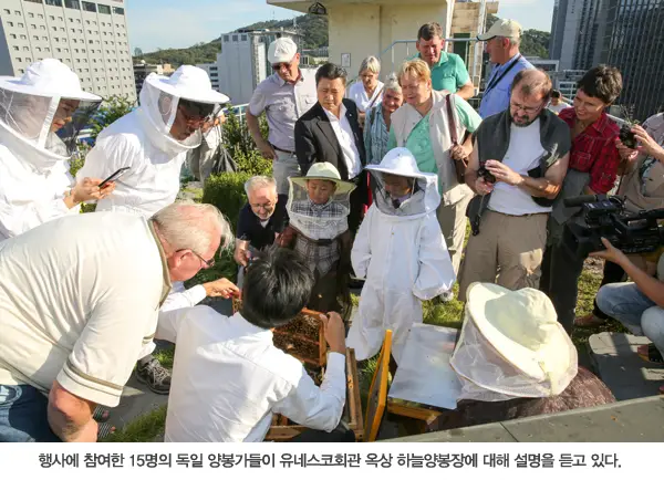 9월 15일 오후, 명동 유네스코회관 옥상 하늘양봉장에서 도시 양봉 체험행사가 진행되었다. 본 행사에는 유네스코한국위원회 직원들뿐만 아니라, 독일 양봉가 15인과 일반 시민들이 함께 참여했다. 행사를 통해 수확된 벌꿀은 유네스코회관 10층의 배롱나무 카페에서 판매 중이며, 판매 수익금은 아프리카∙아시아 교육지원사업인 ‘유네스코 브릿지 프로젝트’를 위해 전액 기부될 예정이다.
