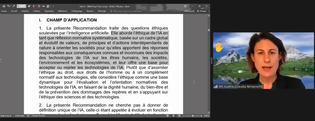유네스코는 4월 26일(월)부터 30일(금)까지 5일간 인공지능 윤리에 관한 권고문(안)에 대한 회원국들의 의견을 수렴하기 위해 화상회의로 “유네스코 인공지능 윤리에 관한 권고문(안) 정부간 특별위원회”를 개최했다. 2차 정부간 위원회는 6월 중 개최될 예정이며, 유네스코 인공지능 윤리에 관한 권고문(안)은 올해 11월에 개최될 유네스코 제41차 총회에서 채택될 계획이다.