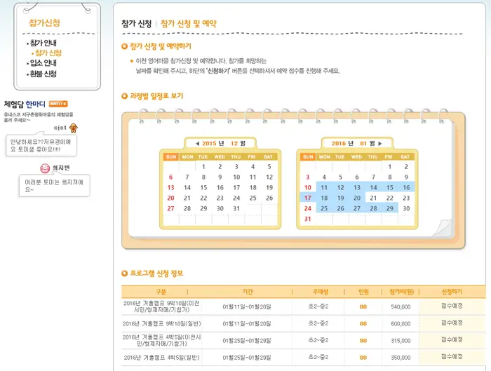 유네스코 지구촌평화마을 2016년도 겨울캠프 참가자 모집 안내 ‘SNS’