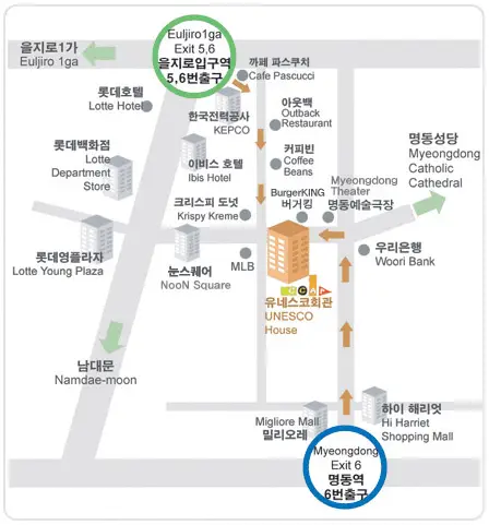 * 지하철 4호선 : 명동역 6, 7번 출구