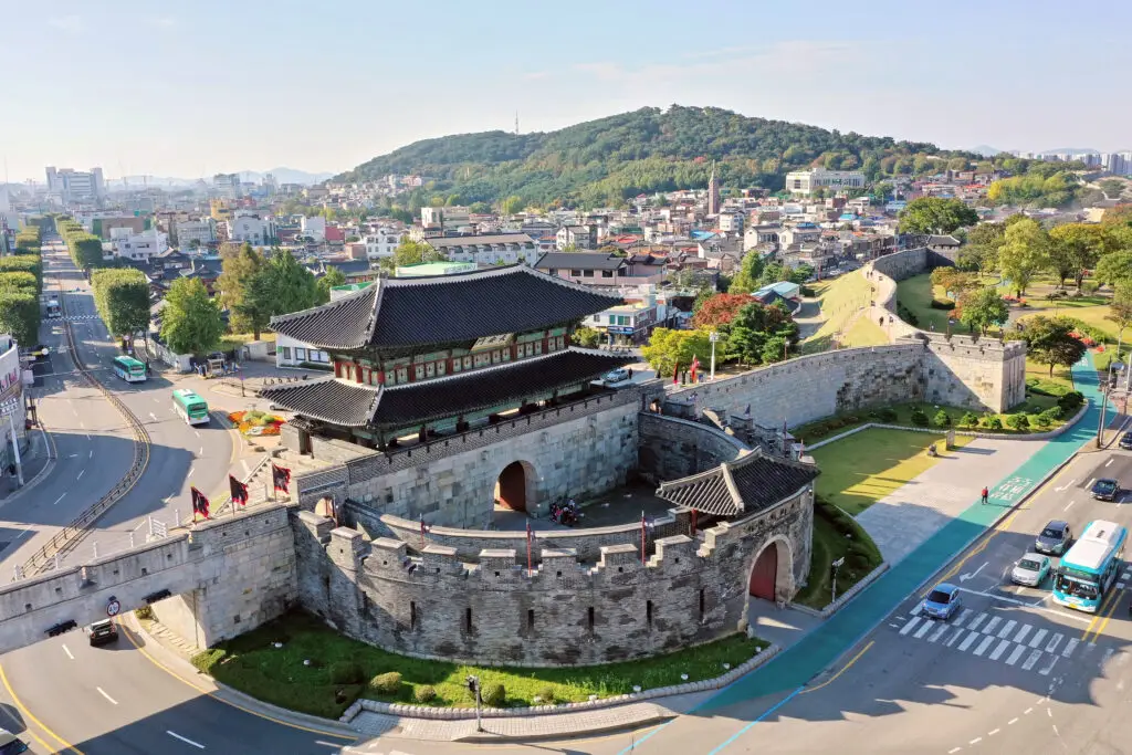 화성은 경기도 수원에 위치한 조선 후기의 성곽입니다. 조선의 제22대 왕인 정조는 갖가지 개혁 정책을 강력히 추진했던 군주였는데요, 다른 한편으로는 비명에 간 자신의 아버지 장헌세자(사도세자)를 절절히 그리워했던 효자로도 유명합니다. 사도세자는 당쟁에 휘말려 뒤주에서 짧은 생을 마감한 비운의 왕세자였지요. 정조는 즉위한 이후 양주 배봉산에 있던 사도세자의 묘를 천하명당으로 꼽히던 수원 화산(지금의 화성)으로 옮겨 아버지의 넋을 위로하지요. 이때 화산 부근에 있던 고을을 수원 팔달산 아래 지금의 위치로 이전하고, 주민을 함께 이주시킬 수 있는 신도시를 건설하기 위해 성곽을 쌓는데요, 이 성이 바로 화성입니다. 수원 화성은 아버지에 대한 정조의 효심을 근간으로 세워졌지만, 그의 원대한 꿈이 깃든 개혁정치의 시험무대이기도 했습니다. 정조가 권세를 쥔 신하들의 터전인 한양에서 벗어나, 신도시 화성을 중심으로 당파 정치를 근절하고 새로운 왕도 정치를 실현하려 했기 때문이지요. 이러한 정치·사회적 배경에서 세워진 화성은 이전의 조선 성곽들과는 다른 여러 가지 특징을 갖고 있습니다. 우선, 처음부터 철저하게 계획을 세워 새롭게 축성된 성이라는 점, 그리고 거주지로서의 읍성과 방어용 산성의 개념이 하나로 합쳐진 성곽도시라는 점이 눈에 띕니다. 또, 성을 쌓는 과정에서 전통적인 축성 기법에 동서양의 새로운 과학 지식과 기술을 적극적으로 도입한 점도 두드러지는 특징입니다. 규장각의 문신 정약용이 고안해 낸 거중기와 녹로(도르래 기구)를 사용해 큰 석재를 옮기고 쌓은 사실이 그러한 예이지요. 이뿐만 아니라 그 이전의 우리나라 성곽에서는 찾아보기 힘든 방어용 시설이 다양하게 설치된 점, 주변 지형에 따라 자연스러운 형태로 만들어져 독특한 아름다움을 보여준다는 점도 화성이 지닌 특성이라고 할 수 있습니다.