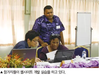 하지만 이토록 인내력을 요하는 상황에도 불구하고 워크숍에 참석한 6개국(나우루, 솔로몬제도, 쿡제도, 키리바시, 통가, 피지) 참가자들은 불평 한 번 없이 매우 진지하게 이틀 동안의 교육과정을 이수했다. 참가자들은 각자 웹사이트 메뉴를 새롭게 구성하고 콘텐츠를 채웠나갔다. 일부는 휴식시간에도 자리를 뜨지 않고 작업을 계속하기도 했다.
