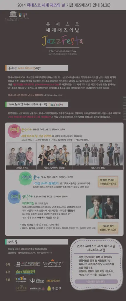 4월 30일 대학로에서 개최예정이었던 ‘2014 유네스코 세계 재즈의 날 기념 재즈페스타’를
