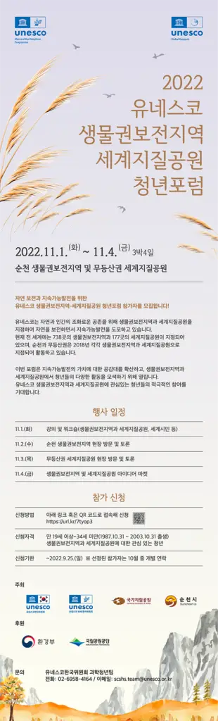 2022 유네스코 생물권보전지역-세계지질공원 청년포럼 참가자 모집