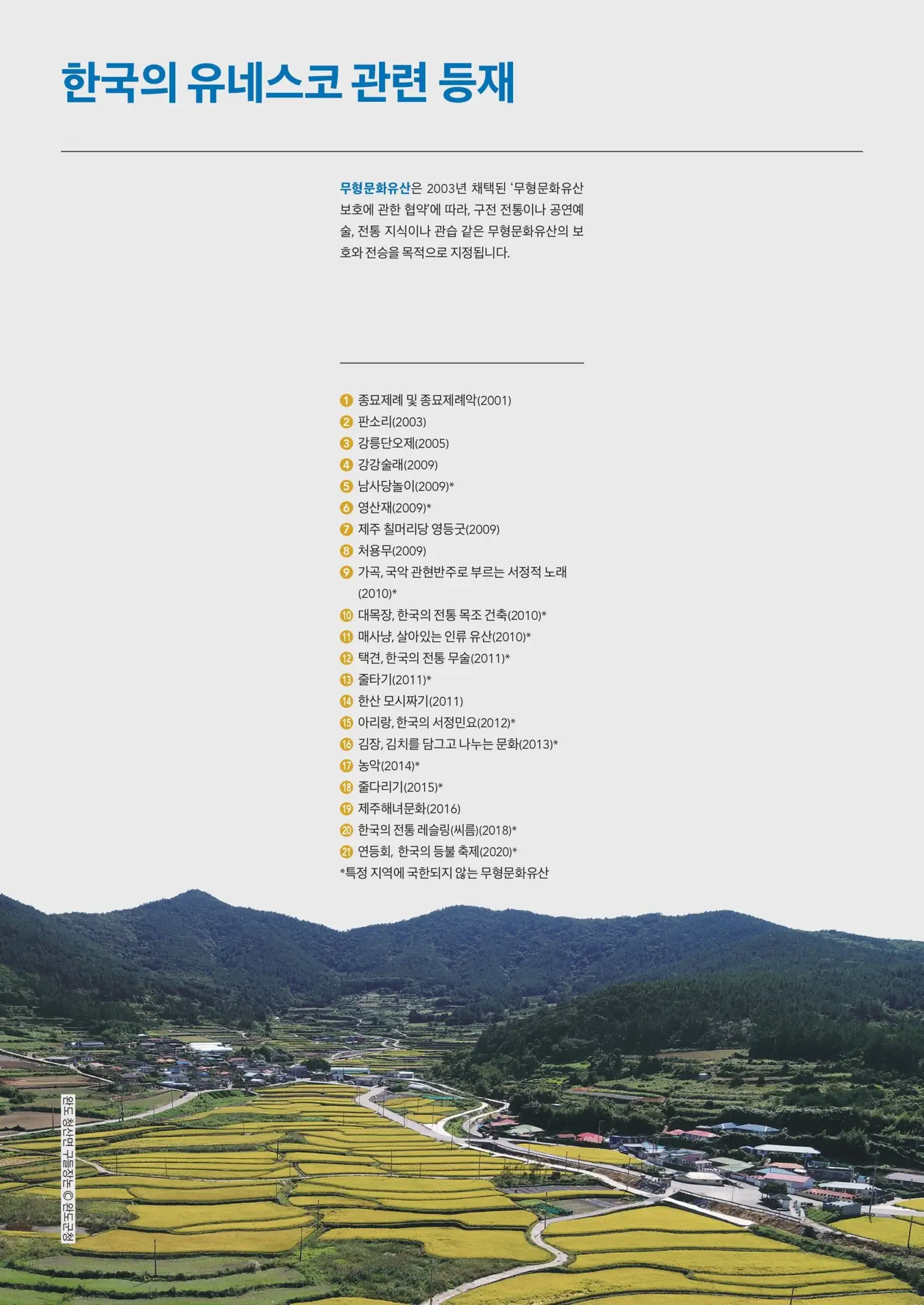 – 유네스코 무형문화유산에 등재된 한국의 유산 21점 중 하나를 선정하여 그림으로 표현