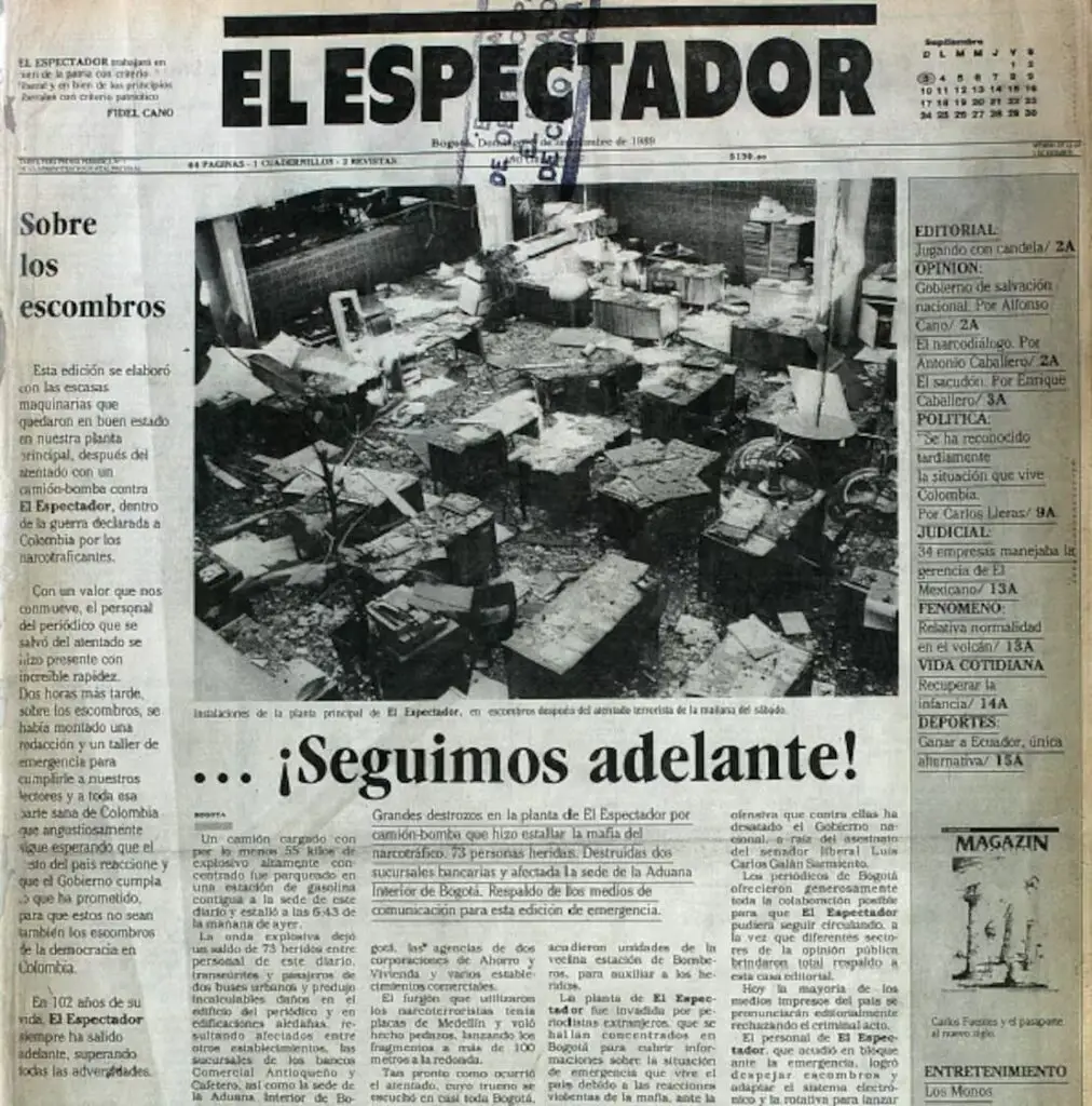 1986년 12월 17일 저녁, 콜롬비아의 수도 보고타에서 사상 최악의 마약 카르텔 두목 파블로 에스코바르가 보낸 암살자들이 유력 신문 『엘에스펙타도르(El Espectador)』의 노련한 기자 기예르모 카노(Guillermo Cano)에게 총을 난사했습니다. “마약이 우리를 타락시켰고, 권력을 사고 파는 일이 우리를 타락시켰고, 손쉬운 돈벌이를 향한 갈망이 우리를 타락시켰다”면서 콜롬비아 정·재계를 장악한 마약 카르텔의 실태를 폭로해 오던 그는 차돌보다 단단한 마음과 굴하지 않는 용기를 가졌지만, 그것들도 카노의 목숨을 끝까지 지켜줄 수는 없었습니다. 카르텔은 3년 뒤인 1989년 9월 2일에 신문사 건물마저 폭탄으로 날려버렸는데요. 그럼에도 불구하고 『엘에스펙타도르』는 카노가 피살된 다음날, 그리고 신문사가 폭파된 다음날에도 신문 발행을 멈추지 않음으로써 진실을 향한 그들의 용기만은 부서지지 않았음을 보여주었습니다. 그 두 날짜 신문의 1면에는 단 한 글자도 다르지 않은 똑같은 제목이 실렸는데요. 그것은 “Seguimos adelante!”, 즉 “우리는 멈추지 않는다!”였습니다.