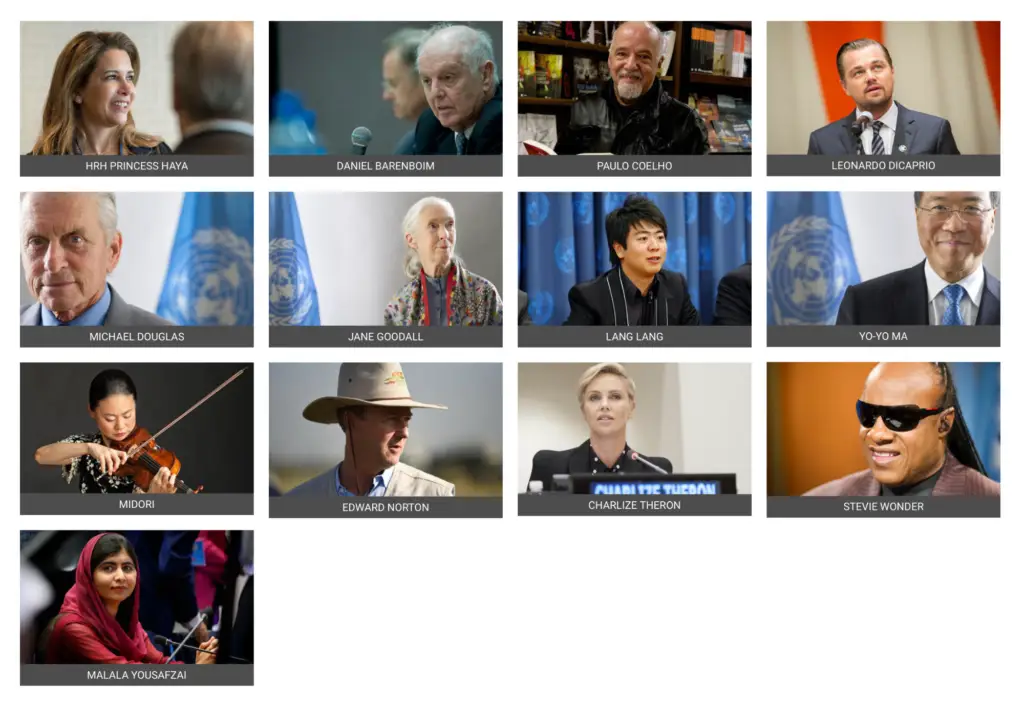 교육, 과학, 문화, 정보커뮤니케이션 분야를 담당하고 있는 기구로서 유네스코는 친선대사를 임명하면서 각 대사별로 특히 집중하는 분야를 지정하고 있어요. 이번에 임명된 세븐틴이 ‘청년’ 친선대사로 콕 집어 지명된 것처럼요. 유네스코 친선대사들에게 붙은 ▲아동 및 여권 보호 ▲문화다양성 ▲생물다양성 ▲스포츠 ▲차별과 인종주의 반대 ▲교육 및 사회적 포용 등의 영역들을 보면 유네스코가 얼마나 다양한 영역을 아우르며 활동하고 있는지도 새삼 느낄 수 있어요. 이렇게 다양한 50여 명의 친선대사들 중에서도 우리에게 특히 친숙한 몇몇 얼굴들과 그들의 주요 활동영역을 여러분께 소개해요.