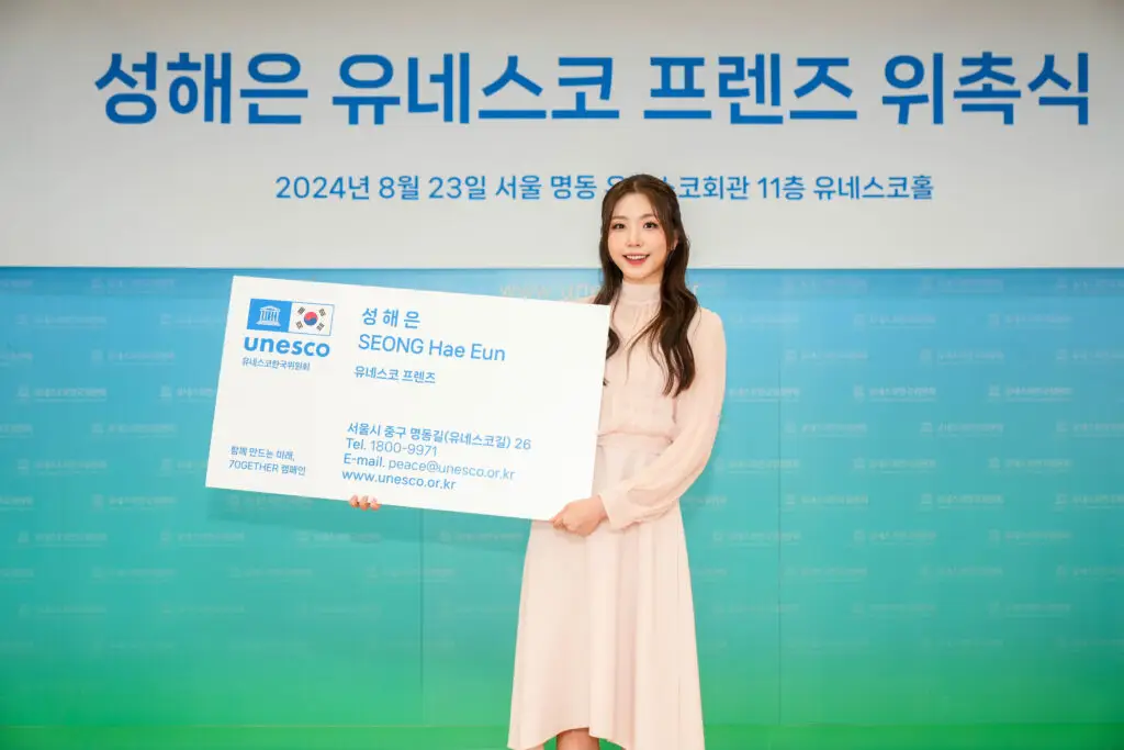 23일 서울 중구 유네스코회관에서 개최된 위촉식에서 유네스코 프렌즈로 공식 임명된 성해은은 2026년 12월까지 유네스코한국위원회 투게더 캠페인 활동에 함께할 예정이다.
