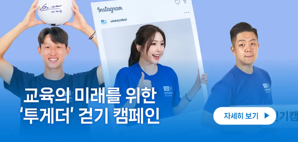 유네스코에 자금을 지원하는 공여 주체들, 그리고 유네스코의 프로젝트를 통해 지원을 받는 수혜국들, 그리고 1조 원이 넘는 두 해 동안의 재원에서 드러난 숫자는 결코 작지 않은 것 같지만, 그 숫자는 정말 방대한 영역을 아우르는 사업 분야에서 전 세계를 대상으로 평화를 만들고 미래 문제에 대처하는 일을 하는 데 결코 충분하다고 할 순 없어요. 그래서 유네스코는 힘차게 달려 나가고 싶은 마음을 꾹 누른 채 주어진 현실 속에서 낼 수 있는 최대한의 힘으로, 다만 멈추지 않고 뚜벅뚜벅 걸어가고 있어요. 유네스코의 비전을 국내에서 구현하고, 동시에 우리의 비전을 유네스코 무대에서 펼쳐 나가고자 하는 유네스코한국위원회도 마찬가지예요. 각 회원국 위원회 중에서 규모도 크고 손꼽히는 활력을 보여주는 위원회이지만, 유네스코한국위원회가 약속한 ‘사람과 자원, 지혜를 모아 지적·도덕적 연대를 다지는 일’, 그리고 이를 통해 한국을 빛내고 인류에 공헌하는 일을 모두 해내기 위해서는 더 많은 사람의 관심과 지원이 필요해요. 그래서 어떻게 하면 되냐고요? 정기적이든 일시적이든 후원을 시작하는 방법도 있고, 마침 11월 10일까지 전국에서 펼쳐지고 있는 투게더 걷기 캠페인에 참여하는 방법도 있어요! 내 건강을 챙기면서 우리 모두의 미래를 잠깐 고민해 보고 싶다면, 아직 늦지 않았으니 걷기도 좋고 사색하기도 정말 좋은 이 가을날의 캠페인을 놓치지 마세요!