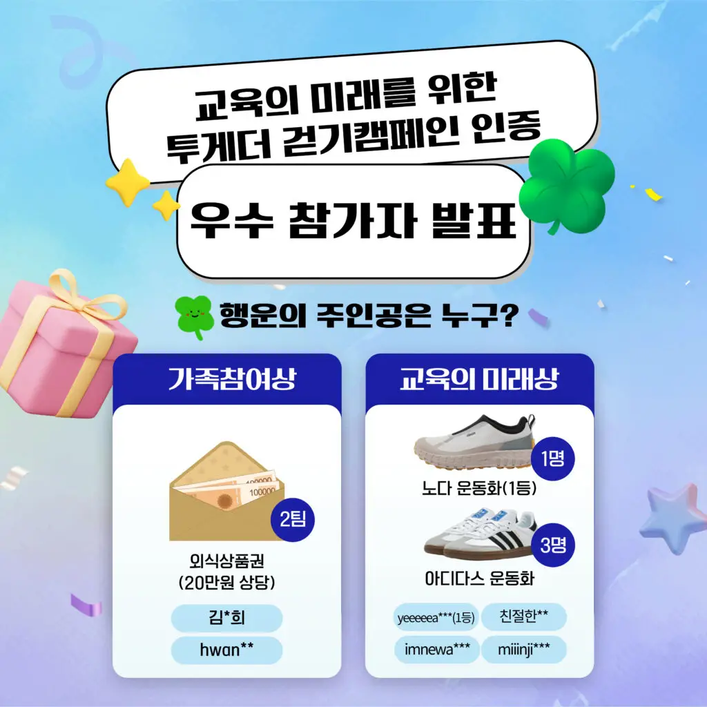 2024 교육의 미래를 위한 투게더 걷기 캠페인에 뜨거운 관심과 참여를 보내주신 여러분께 감사드립니다! 이번 캠페인은 유네스코한국위원회 창립 70주년을 기념하여 진행되고 있는 70GETHER(투게더) 캠페인의 일환으로, 더 나은 교육의 미래를 만들기 위한 뜻깊은 걸음을 함께하는 소중한 시간이었습니다.