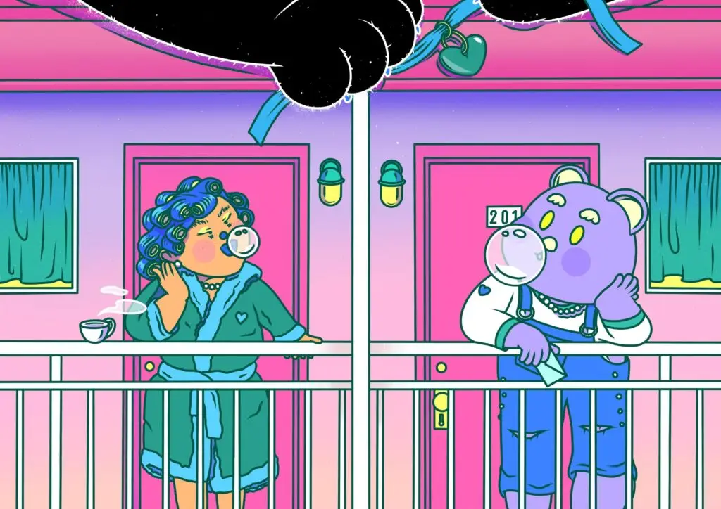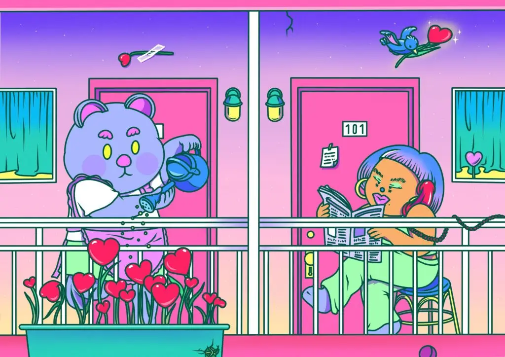 색감과 분위기를 설정하는 과정은 여러가지 요소들이 조화롭게 어우러져야 하기 때문에 매우 중요한 부분이라고 생각합니다. 먼저 전달하고자 하는 감정이나 메시지를 중심으로 접근하는 편입니다. 파스텔 톤으로 공간을 채우고, 강조하고 싶은 부분은 형광 색으로 포인트를 주는 방식을 사용합니다.