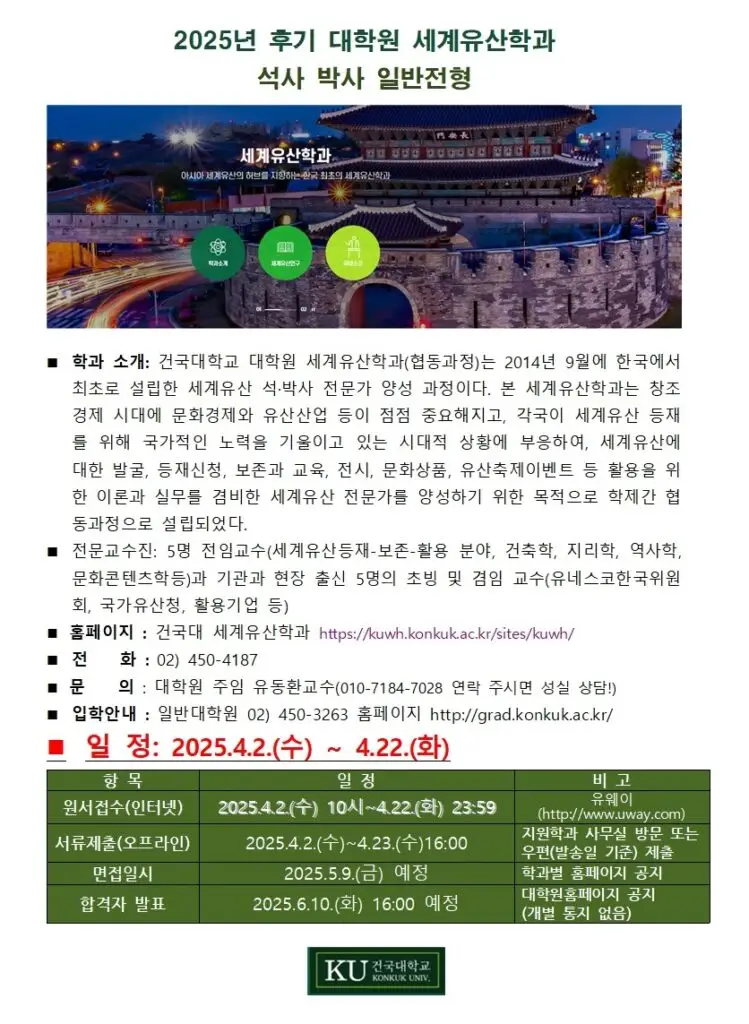– 합격자 발표 : 2025. 6. 10.(화) 16:00 예정, 대학원 홈페이지 공지(개별통지 없음)