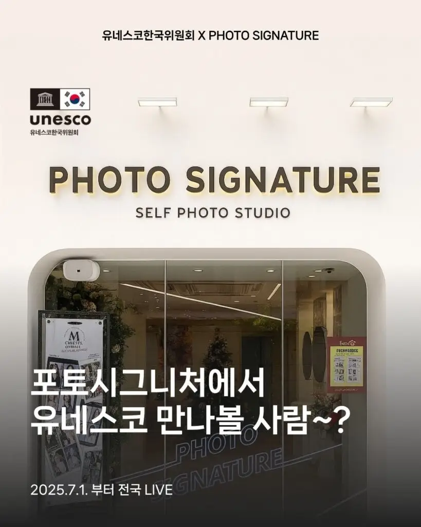 셀프포토로 잘 알려진 ‘포토시그니처’(대표 이성호)가 유네스코한국위원회의 메시지를 더 많은 시민들에게 전하고자 전국 226개 지점에서 캠페인 영상을 송출하는 특별한 후원을 시작합니다.
