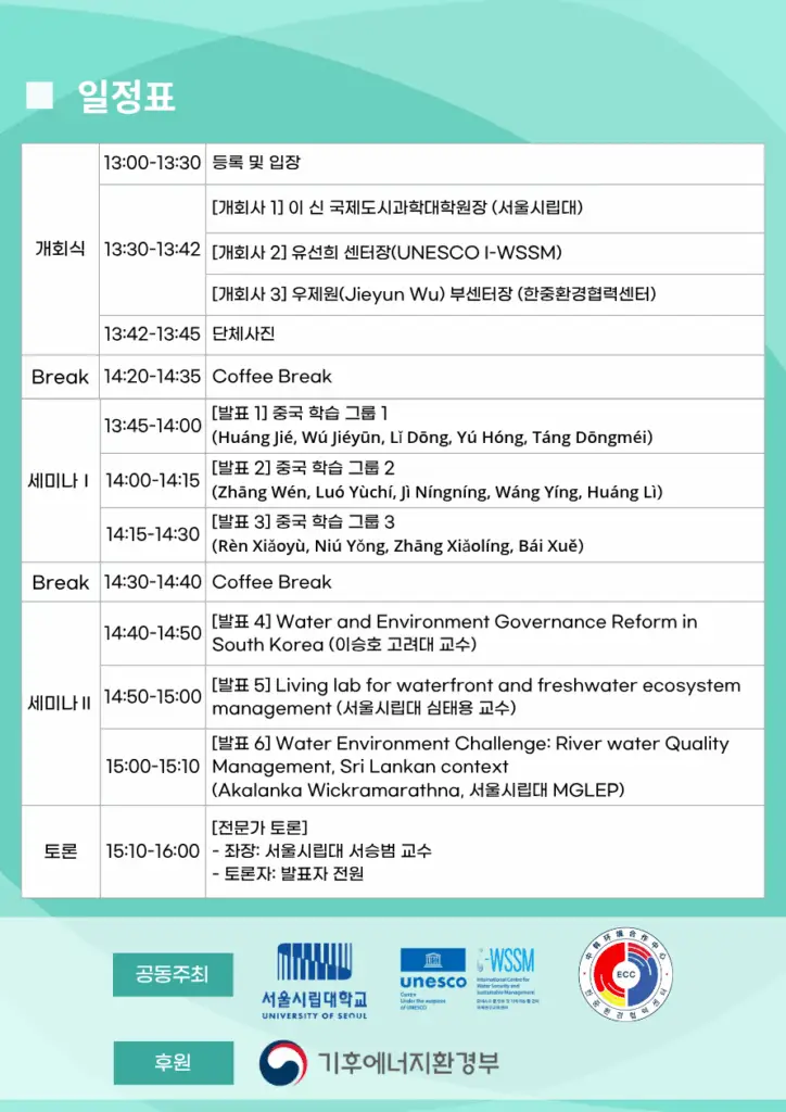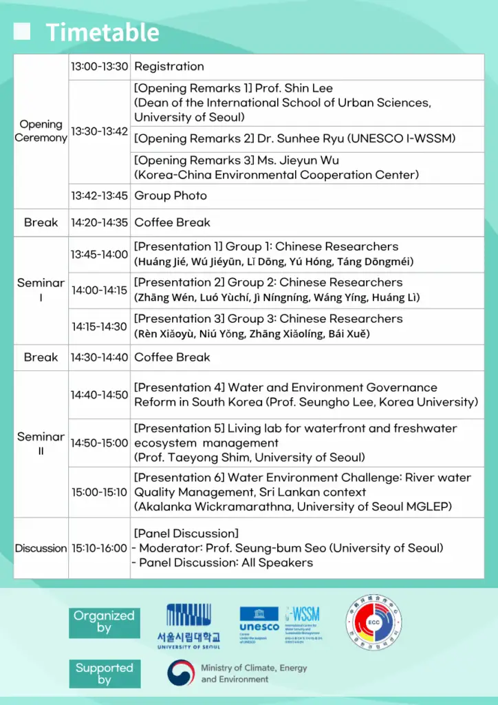 Hosted/Organized by: University of Seoul, UNESCO International Centre for Water Security and Sustainable Management (UNESCO i-WSSM), Korea–China Environmental Cooperation Center