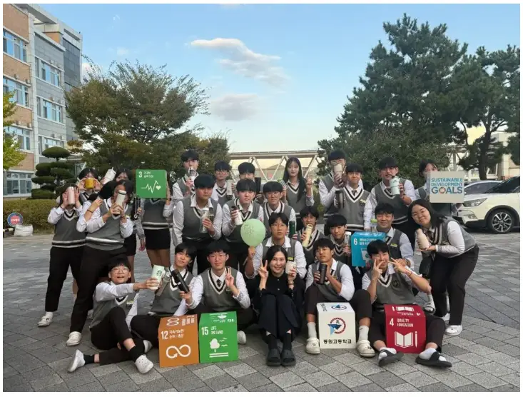 동원고등학교는 ‘Learn to Live Together’를 주제로 지속가능발전교육주간(ESD Week)을 5일간 운영하였습니다. Dream 드림 캠페인 취지에 맞춘 빈그릇 운동, 교실 소등 캠페인, 학급 평화 사진전, 아나바다 길마켓, 건강 체력 교실, 지속가능한 팝업 퀴즈 등 다양한 활동을 진행하였습니다. 학생들은 경쟁 중심의 학교 문화를 넘어 협력과 연대를 실천하며 평등, 평화, 자유, 정의, 공존의 가치를 느낄 수 있었습니다.