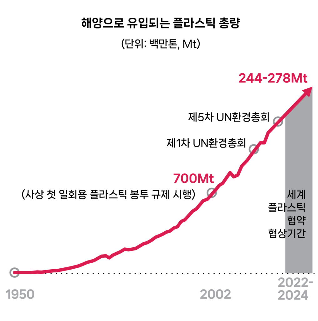 지난 2015년, 지구의 기온 상승폭을 억제하기 위해 각국이 온실가스 배출량을 관리하기로 합의한 ‘파리협정(Paris Agreement)’이 채택됐다는 소식에 전 세계가 흥분을 감추지 못하던 기억이 아직도 또렷합니다. 인류가 공멸을 피하기 위해 기꺼이 한목소리를 낼 수 있다는 것을 증명한 기념비적인 일이었으니까요. 하지만 안타깝게도 그러한 환호가 실망으로 바뀌기까지는 오랜 시간이 걸리지 않았습니다. 협약의 성패에 큰 영향을 미치는 미국은 협약 탈퇴를 선언해버렸고, ‘지구 평균 온도 상승폭을 산업화 이전 대비 최대 2도 이하로 유지’라는 목표 달성도 사실상 어려워 보이기 때문입니다. 그렇다고 해서 이러한 국제 협약이 아무런 소득이 없었다고 평가절하할 이유는 없을 겁니다. 미흡하나마 각국은 여전히 ‘목표’를 세우고 이를 지키기 위해 노력하고 있으며, 무엇보다 이 문제에 대한 대중의 인식도 높아졌으니까요. 그러니 안토니우 구테흐스 유엔사무총장을 비롯한 국제기구 인사들이 늘 강조하는 “전 지구적 문제에는 전 지구적 해결책이 필요하다”라는 말은, 아직까진 그 시효가 다한 것 같지는 않습니다. 그리고 전 세계는 지금, 파리협정의 뒤를 잇는 또 하나의 전 지구적 약속을 마련하기 위해 논의를 이어오고 있습니다. 주인공은 바로 ‘국제 플라스틱 협약(Global Plastics Treaty)’입니다. 온실가스와 마찬가지로 한번 생산되면 사라지지 않고 차곡차곡 쌓여 문제를 일으키는 플라스틱. 이 플라스틱으로부터 환경과 우리 건강을 지키기 위한 또 하나의 간절한 약속을 국제사회는 만들어 낼 수 있을까요? 오늘 뉴스레터는 이 새로운 약속의 진척 상황과 쟁점들을 정리해 보았습니다.