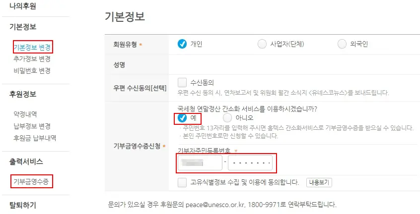 이메일로 신청시 후원자명, 주민번호 앞 6자리, 전화번호를 함께 적어서 신청