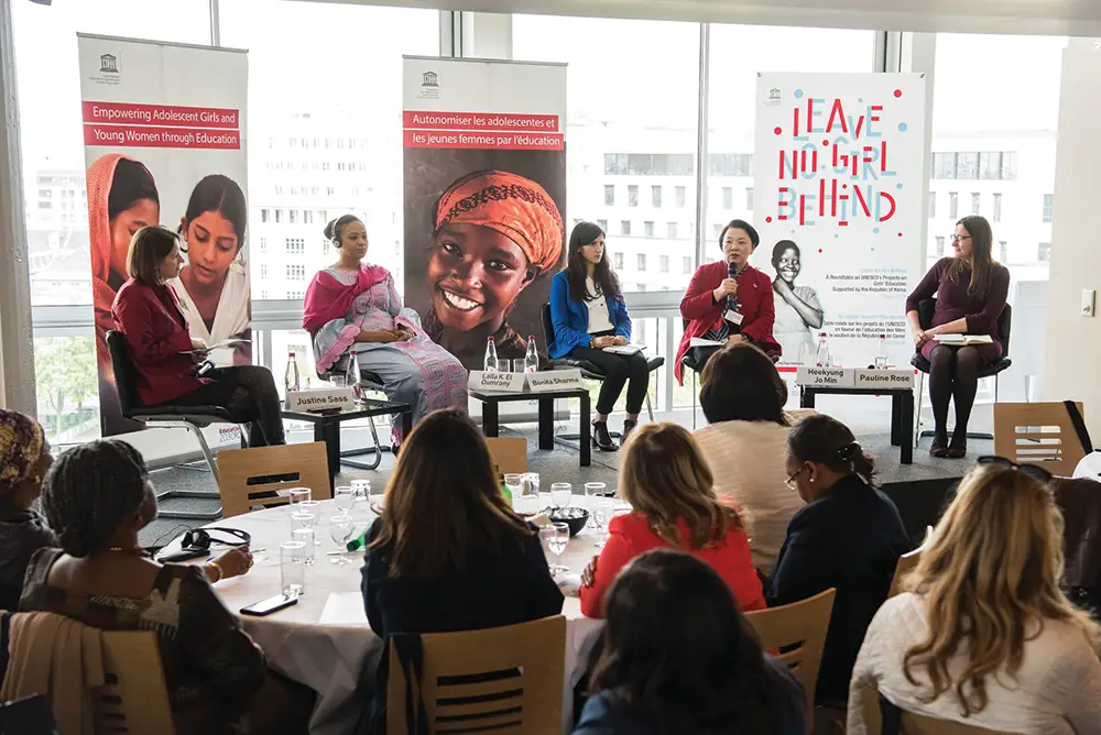 이어진 라운드테이블에서는 소녀교육 사업 관계자들이 다각도에서 유네스코 소녀교육 사업을 평가했다. 말리에서 한국국제협력단(KOICA)과 협력해 소녀교육 사업을 추진하고 있는 랄라 엘 옴라니(Lalla El Oumrany) 씨는 “조혼이나 집안의 경제적 문제로 인해 학업을 중단하는 소녀들이 아직도 많다”며 다분야간 접근(cross-sectoral approach)의 필요성을 강조했다. 소녀들을 학교에 보내는 것으로 그치지 않고, 보건, 젠더, 고용 등 다방면에 걸친 교육을 병행해 소녀들이 사회의 어엿한 일원으로 성장할 수 있도록 도와야 한다는 것이다. 네팔 소녀교육 사업의 수혜자에서 사회적 사업가로 성장한 보니타 샤르마(Bonita Sharma) 씨도 이 주장에 공감하며, 소녀들에게 영양 및 월경에 대한 교육을 제공하기 위해 자신이 설립한 사회적 기업인 ‘Social Changemakers & Innovators’를 소개했다. 특히 영양부족이 심하고 월경을 불경시하는 네팔 사회에서 적절한 영양 공급과 월경에 대한 교육이 이루어진다면 여성의 인생 전체를 바꿔놓을 수 있는 변화를 가져올 것이라고 강조했다.